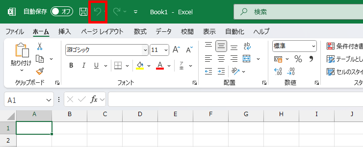 Excel の操作は、慣れている人間でも、わりとミスの連続です。操作で失敗したら、これを押せば1手順ずつ前の状態に戻っていきます。