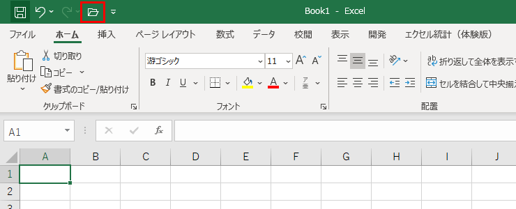 クイックアクセスツールバーで開くボタンをキャンセルした図