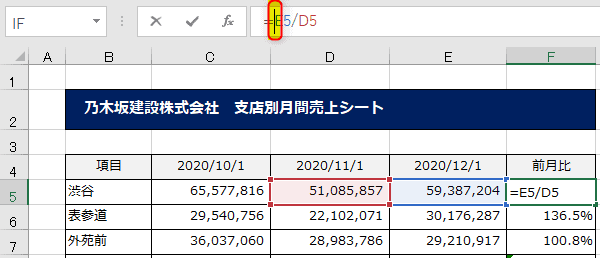 前月比 0%という表示もおかしいといえばおかしいのですが、むやみに「”-“」を入れたり「””」として空白セルを出力するのもすっきりしません。