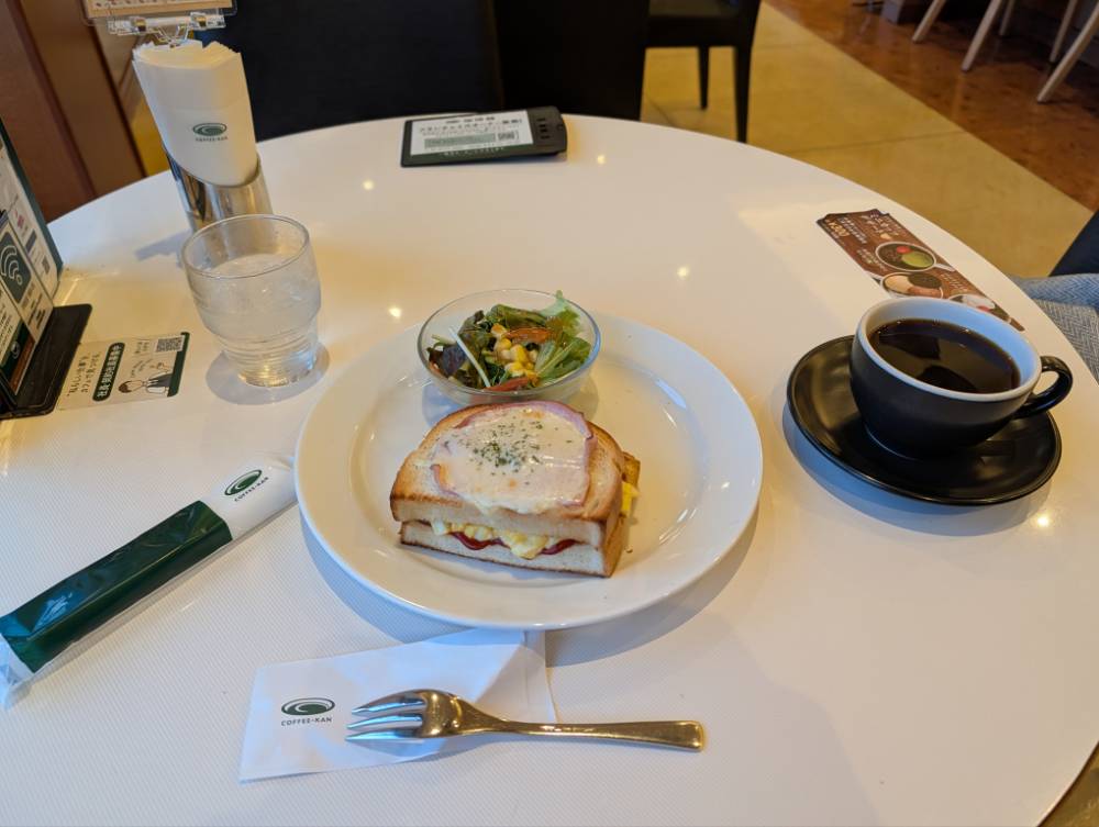 3日目、GoodMorningHikone。来来亭の隣にあった珈琲館で午前7時に入店。モーニングを堪能します。