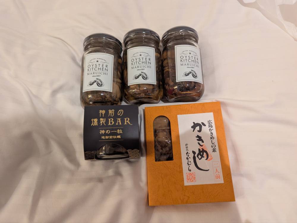 お土産は牡蛎をたくさん買いました。家族みんなで牡蛎祭りをしようと思います。