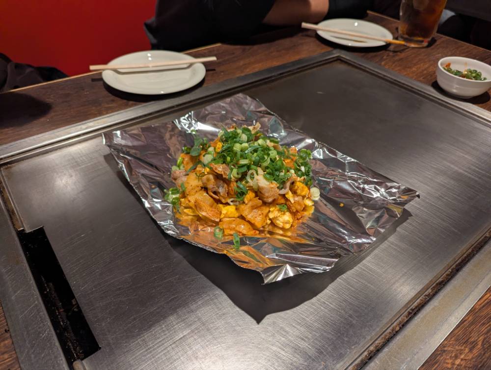 そしてまた別の日には広島焼を堪能するために鉄板焼き屋さんに。豚キムチ。