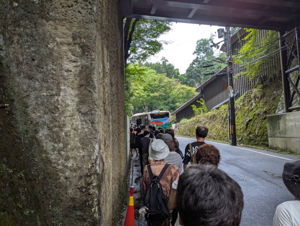 貴船口から貴船神社まで、バスが出ています。めちゃくちゃ混んでいたけれども、バスの回転率が速いので、それほど待たずに神社まで行けます。