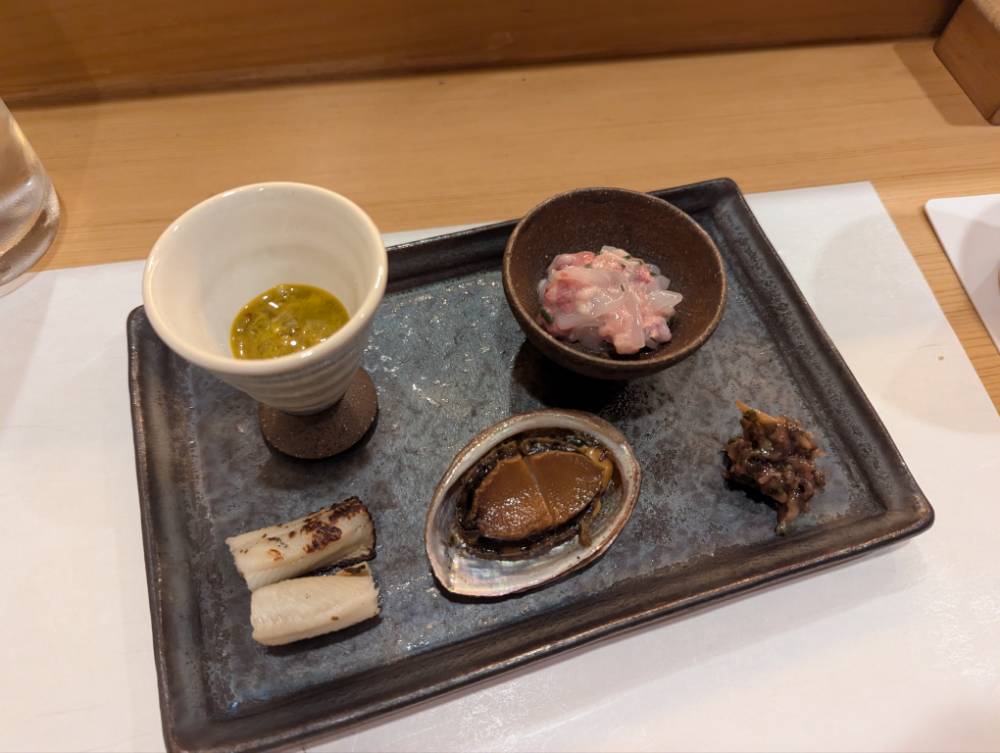 そして一升は飲めるだろうセット。シャコの部類なんですけど、マジャクだったかな。左上の肝が人生で味わったことのない味でした。