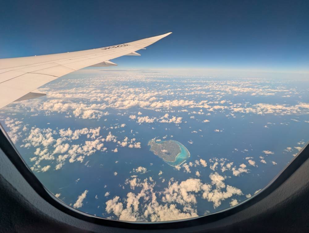 1時間ぐらいすると、機内の窓から与論島がきれいに見えました。