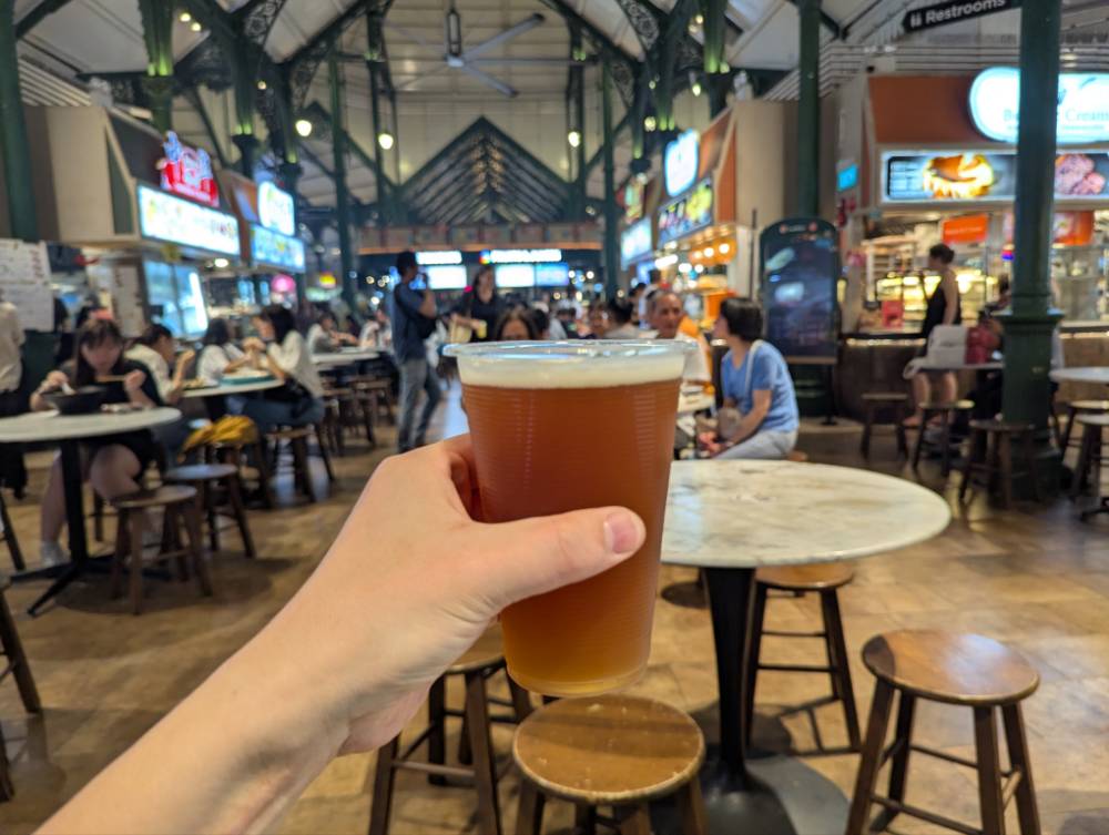 ウェルカムドリンクのビールは1パイント14ドル。いやぁ、エクスペンシブ。