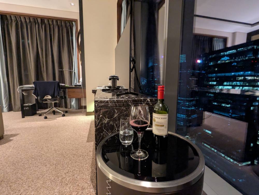シンガポールは外で調子乗って飲むと、あっという間に2万円ぐらい消えるので、仕事飲み以外は最低価格となる24ドルのワインを買って、部屋飲みしていました。