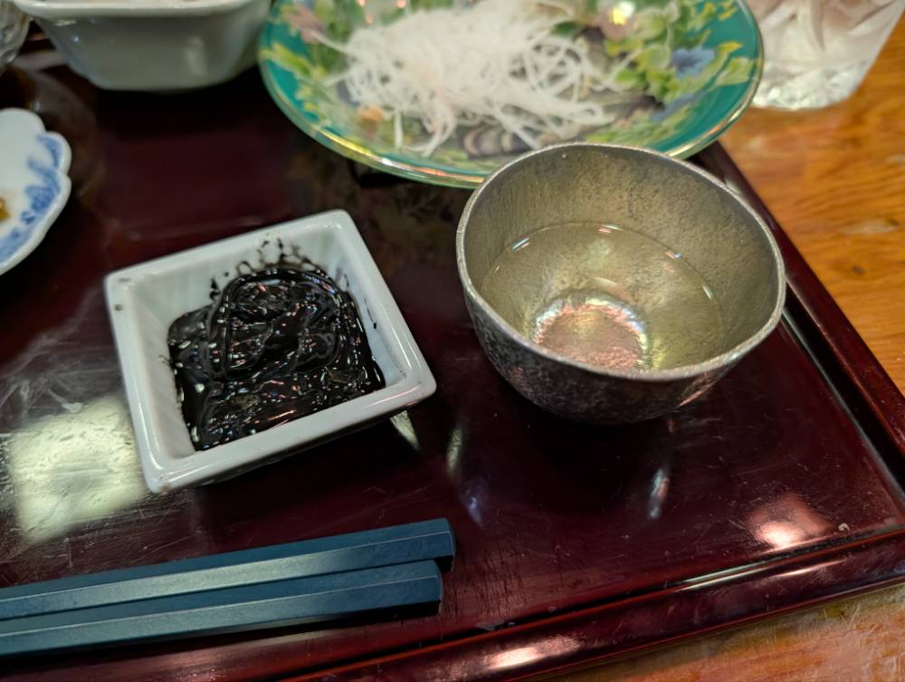 イカ墨と肝のペーストしたイカの塩辛。これは本当に日本酒が進みます。富山の水は毒があると言われているゆえんですね。おいしすぎるということ。